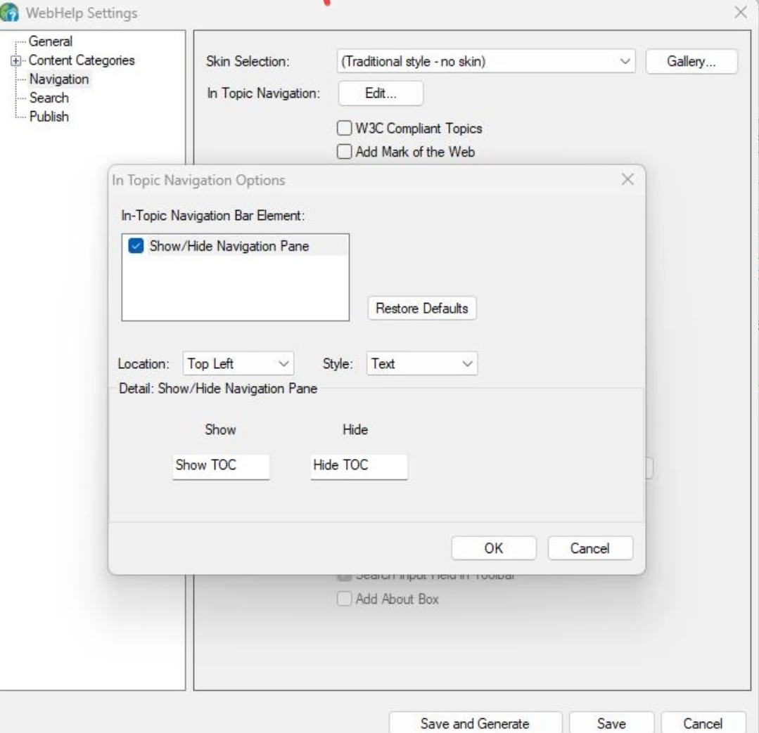 I had a project created using RH2019 classic version similar to webhelp, and have migrated it to the 2022 version, but have not been able to create an output similar to 2019 version. What is the best way be which I can replicate the RH2019 output screen profile in RH2022 so that my output folder packages remains the same.Also I'm unable to find the show hide toc navigation bar which was previously present. How do I customize the preset so that my functionalities remains same as the older version. Also, is there a plan to introduce the older webhelp traditional skin output preset in the upcoming releases of Adobe Robohelp 2022.