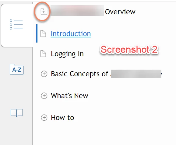 We are using RH2022, converting up from RH2015. We have approx 33 merged projects, and we have followed the parent-child merged project set-up as outlined by Peter Grainge very carefully. So far, so good. However, when we generate the help using azure blue and responsive HTML, our TOC appears as in Screenshot 2 below. It is what I think is the "drill down" TOC. The folder at the top in the orange circle must be clicked on in order to see the other merged projects. When another merged project is clicked on, the user again will only see the topics for that project.