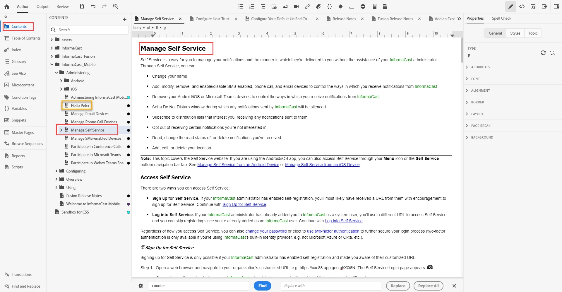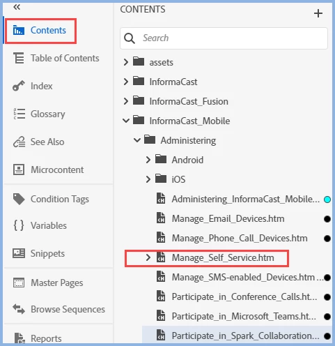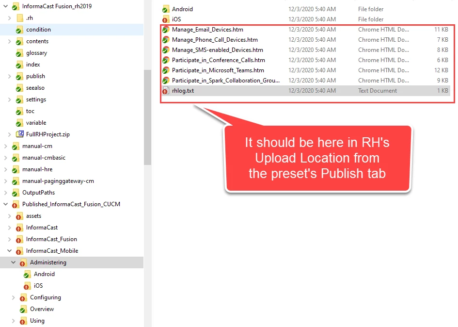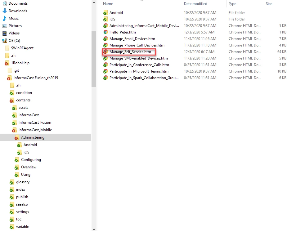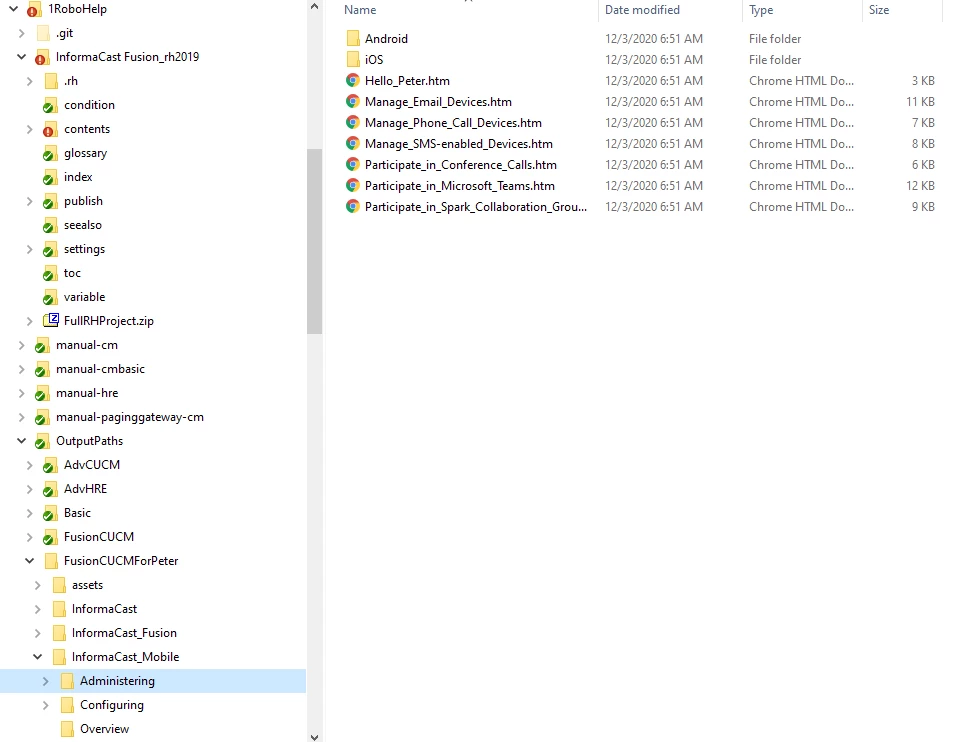 I'm not sure what you're saying. In my Windows Explorer, the topic is in C:\1RoboHelp\InformaCast Fusion_rh2019\contents\InformaCast_Mobile\Administering. In the project, it's in InformaCast_Mobile\Administering.