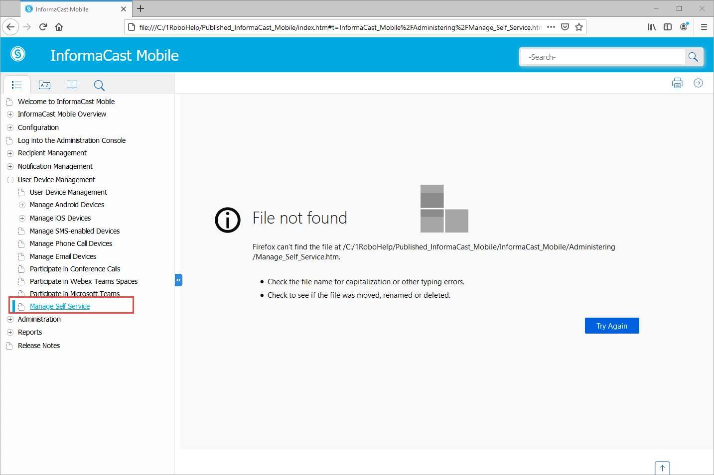 This is truly puzzling. I have a topic, Manage Self Service, that is not showing up correctly in published output. I've generated and published multiple times, and RH doesn't seem to be recognizing content-level changes I've made.