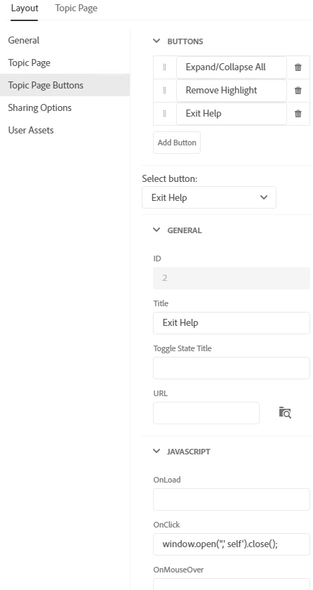 For the help update, I've selected the TopNavigation skin for frameless output. I'd like to add the "close help" function to the same row as the print, expand/collapse all, and remove highlight functions. I already have an icon for it: