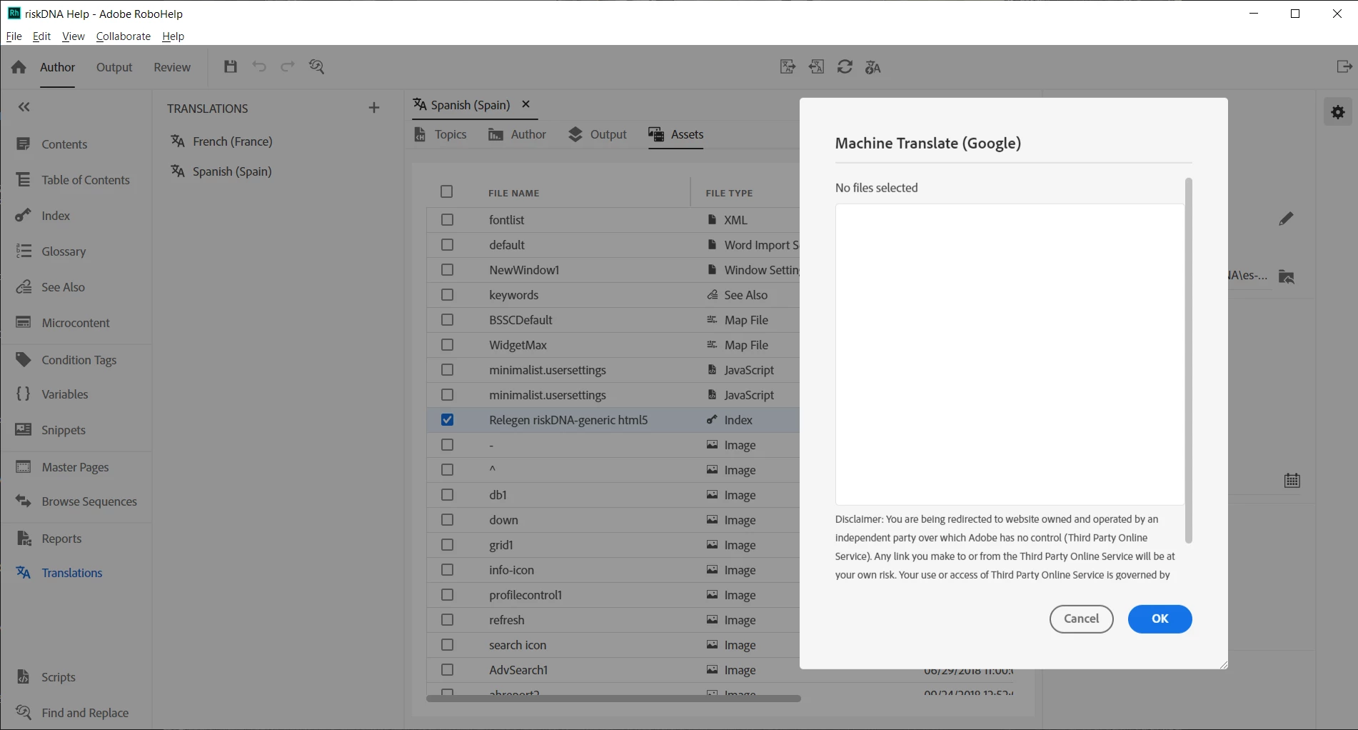 I have an existing English Help project which I have successfully translated to Spanish. When I open the translated project, there are a few items which did not translate. The Index is still in English. Should this also be translated when I translated the project ? If not, hold do I handle the index in the Spanish Help ?
