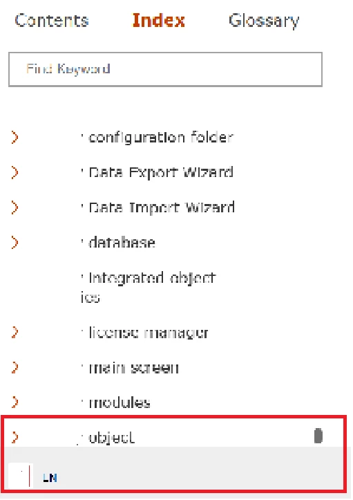 Trouble viewing the content in glossary index