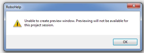 Unable to Create Preview Window Error when Clicking View Item Robohelp 2015