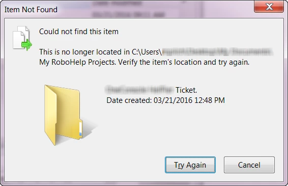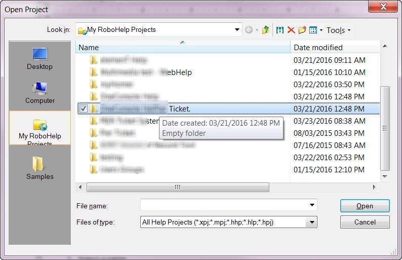 Unable to delete empty folders in the My RoboHelp Projects folder.