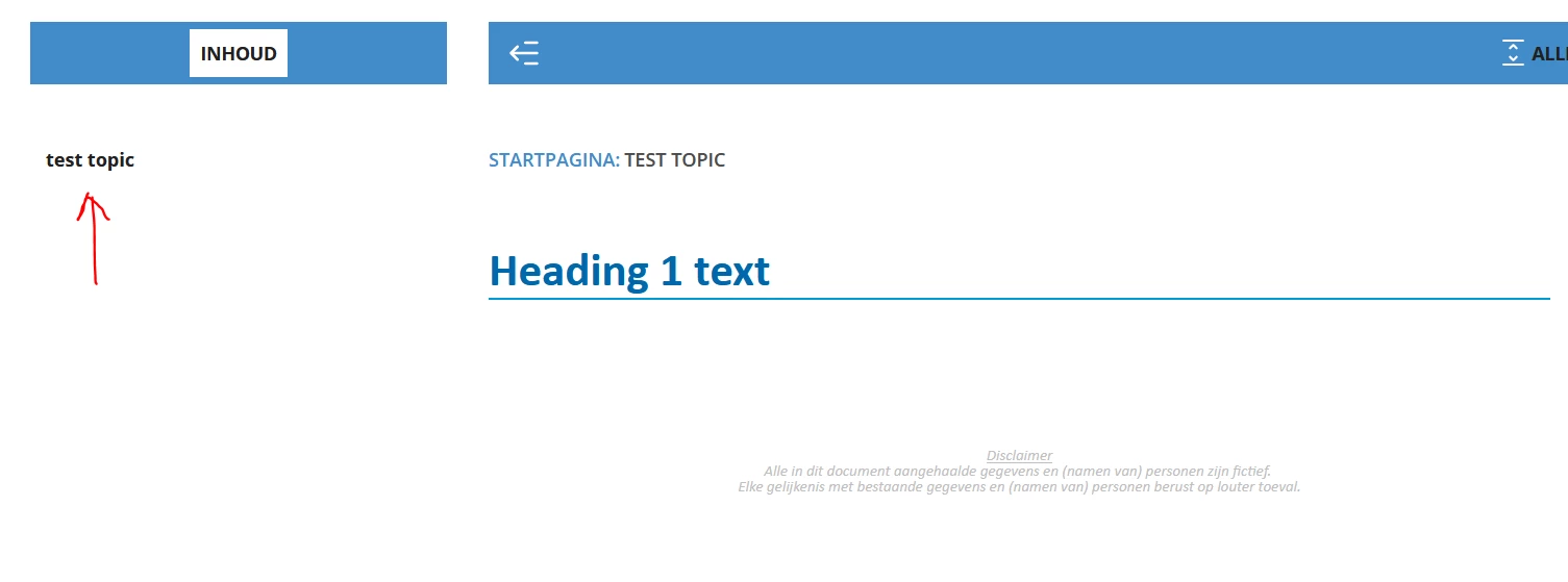 Illustration - take the following topic, which has Title test topic (1) and an h1 Heading 1 text (2):