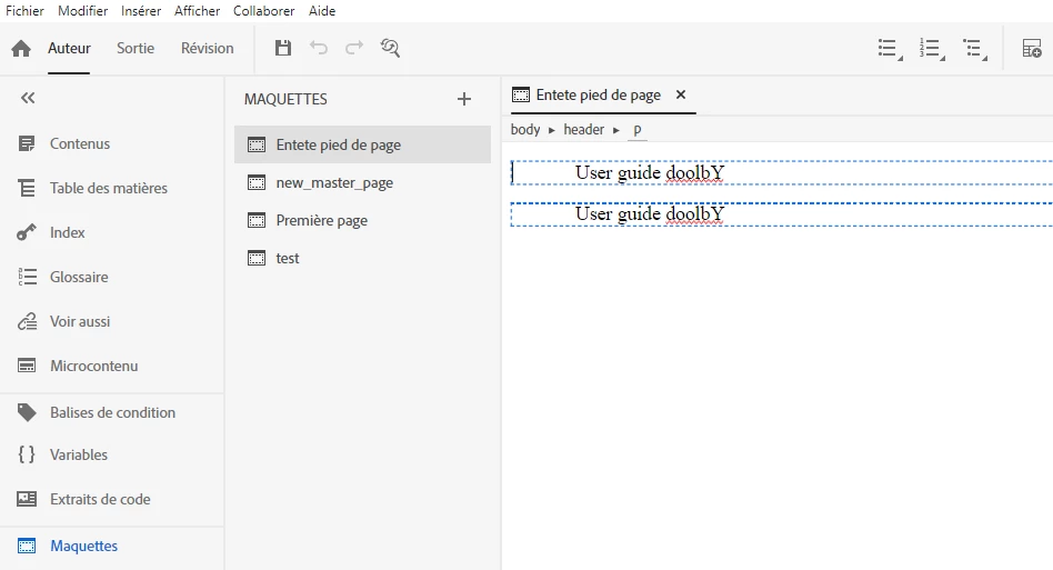 J'ai reussi a passer par "Maquettes" pour le pied de page et l'entete