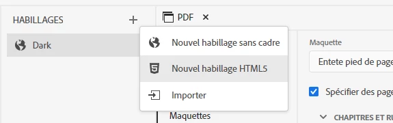 J'ai lu qu'il fallait passer par "Sortie" - "Habillages" mais je ne peux pas ajouter d'habillage word ou PDF