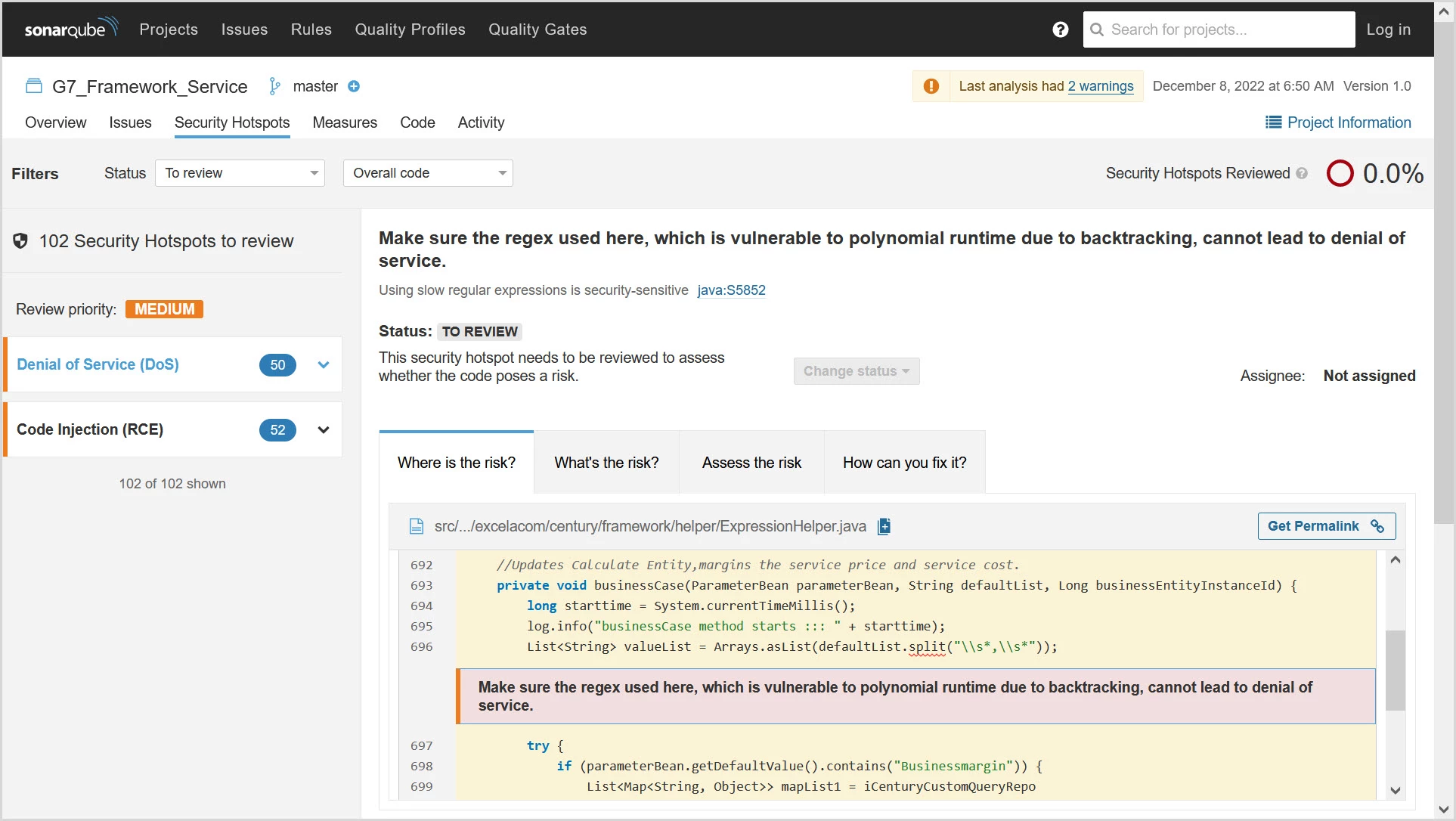 102 Security Hotspots to review.