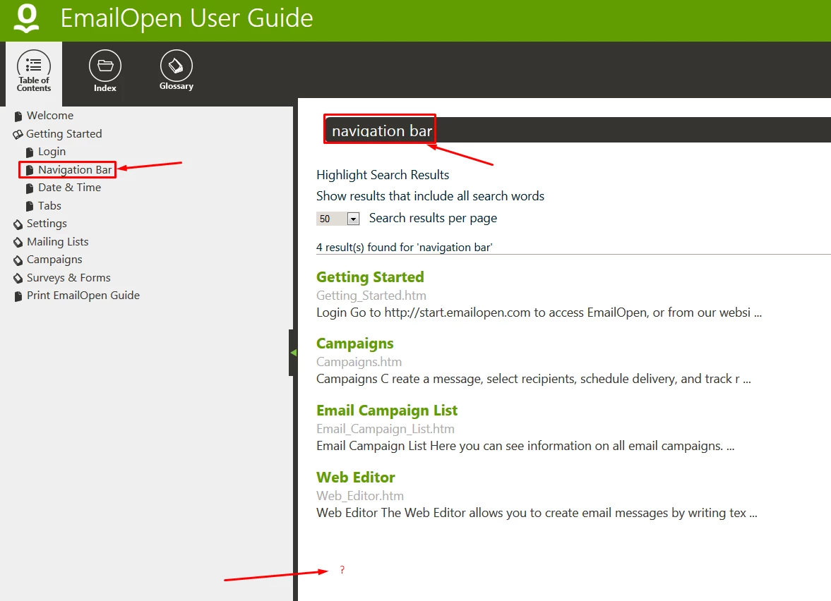 When I search in my web guide, it does not search for bookmarks or topics, only book titles. How can I change this setting so that it searches for bookmarks and topics as well?