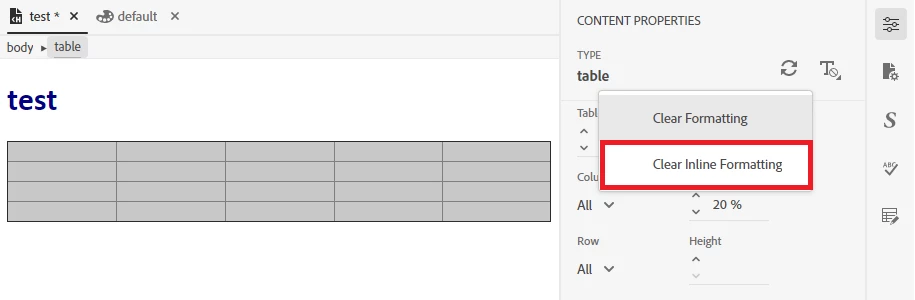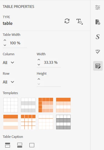I'm using RoboHelp 2022 and I don't see any pre-formatted tables. If I Insert Table from the toolbar, I just get to select the number of rows/columns and a simple plain table is inserted.