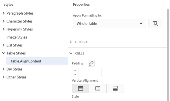 Where do I find vertical text alignment in table cells in RoboHelp 2019?