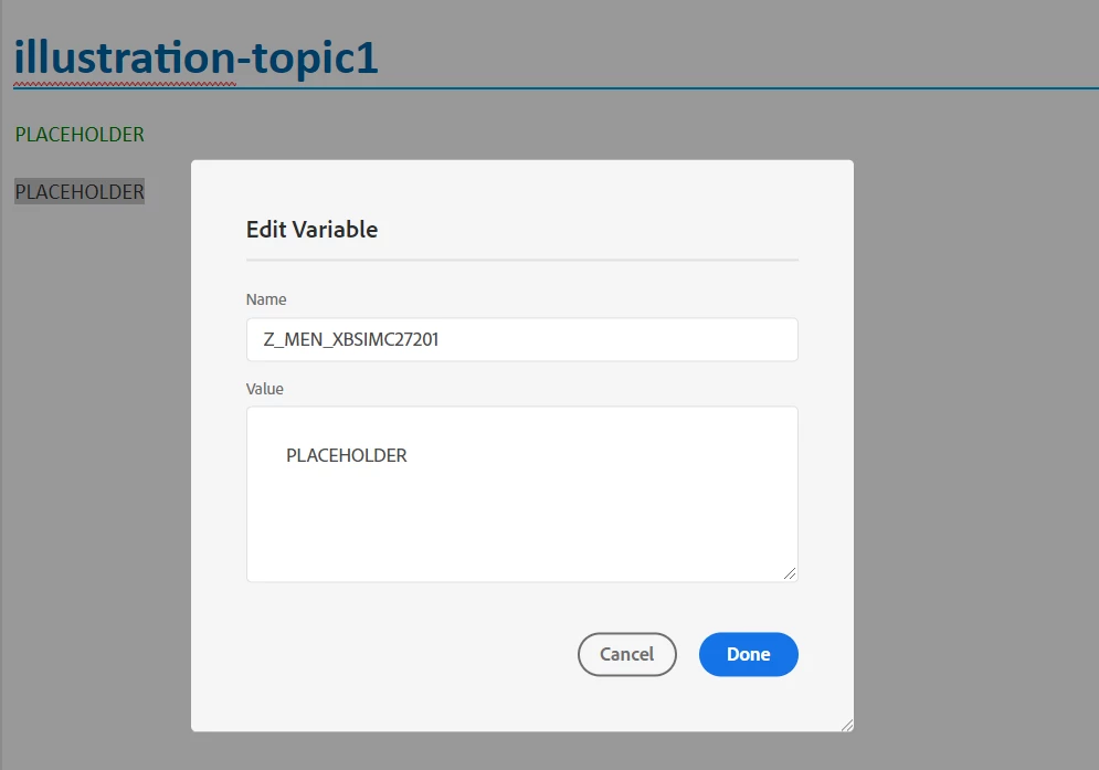 3 - when exporting this illustration topic, I notice the XLIFF export fails to use the new PLACEHOLDER value.