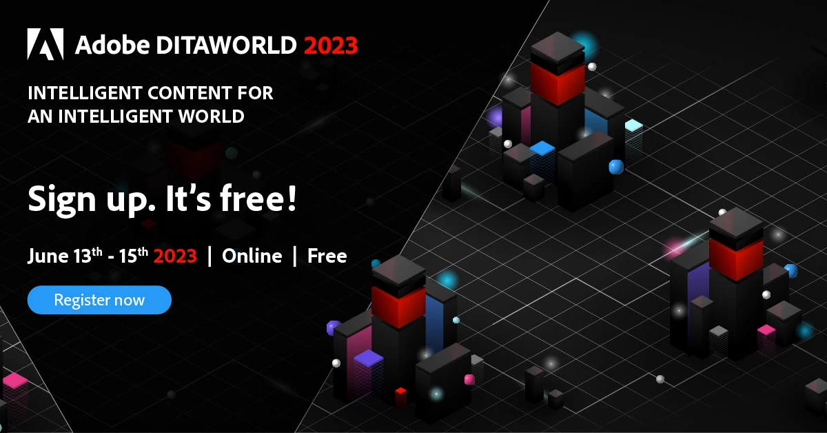 Featuring insights from industry leaders, customer success stories, and Adobe product innovations - this year's biggest DITA online conference is back with a bang! Get ready to navigate the world of intelligent content experiences. Register now!