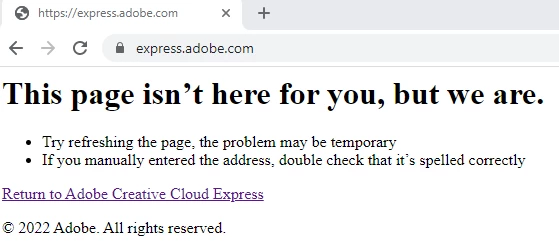 I'm trying to donwload Adobe Spark for web but I just keep getting the message above. Is there an issue with it or am I ding something wrong. I works on my phone but I want to use it on my laptop