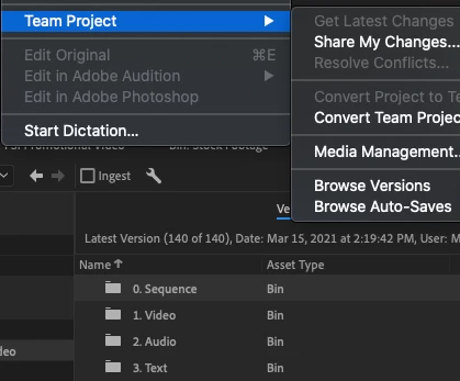Cannot get latest changes in Team Project even though Premiere detects newer versions