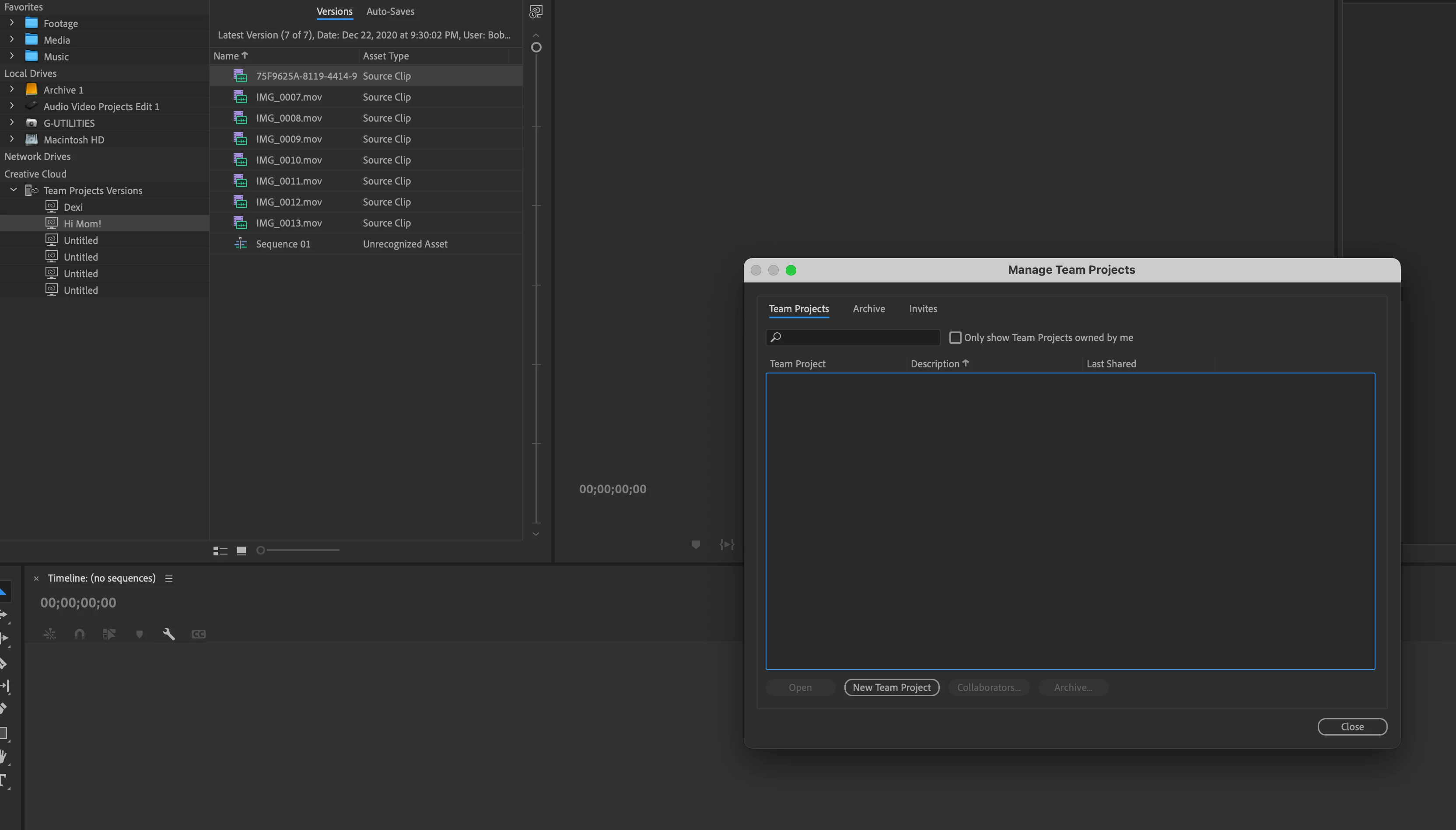 How to delete mysterious Team Projects from Premiere Pro