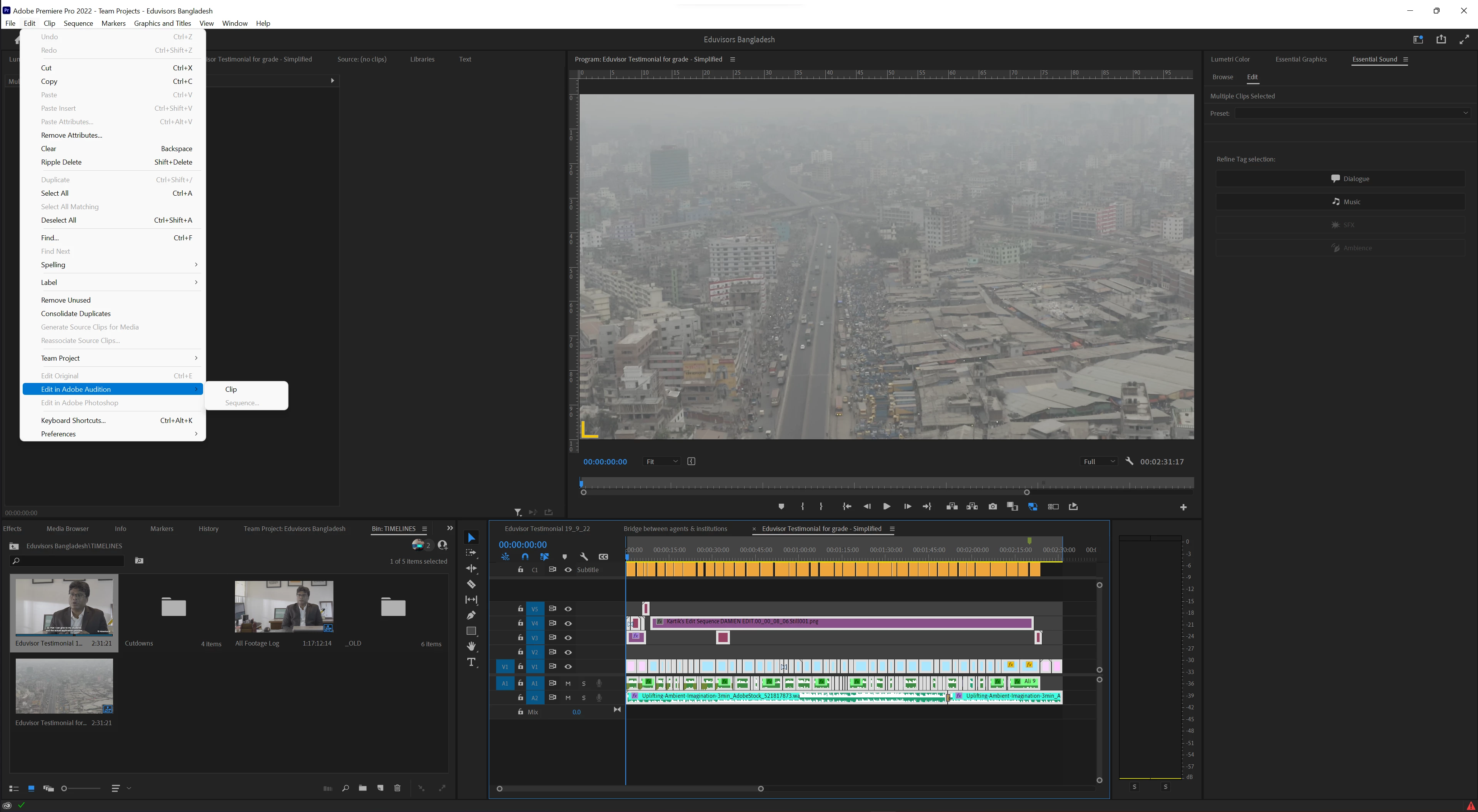 So basically, dynamic link for full sequences between premiere and audition is not available if you are working on a team project for some reason.