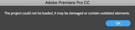 The following message is listed at the bottom left of Premiere: