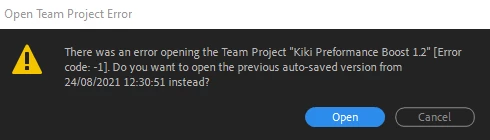 Open Auto-Save Error - Team Project - Error Code: -1