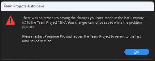 Preimere Pro 22 - Teams Project not autosaving