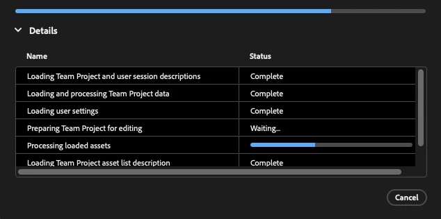 Premiere 25 will not load the assets from a large team project in premiere 24. this mkes switching to 25 undoable. opening a project that was created in Premiere 24 hangs indefinetly. I have tried converting it to a project fist (which works). but if I close the team project and try to open it again it fails again.