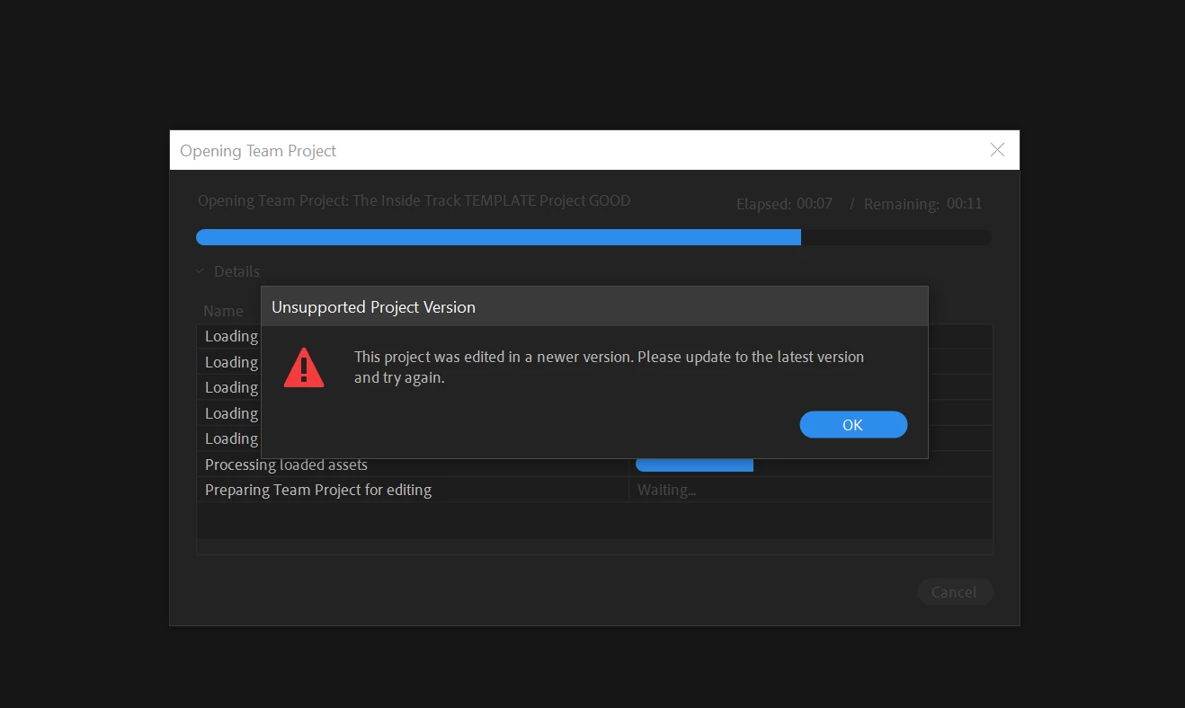 Premiere Teams Project "Unsupported Project Version" error with latest update