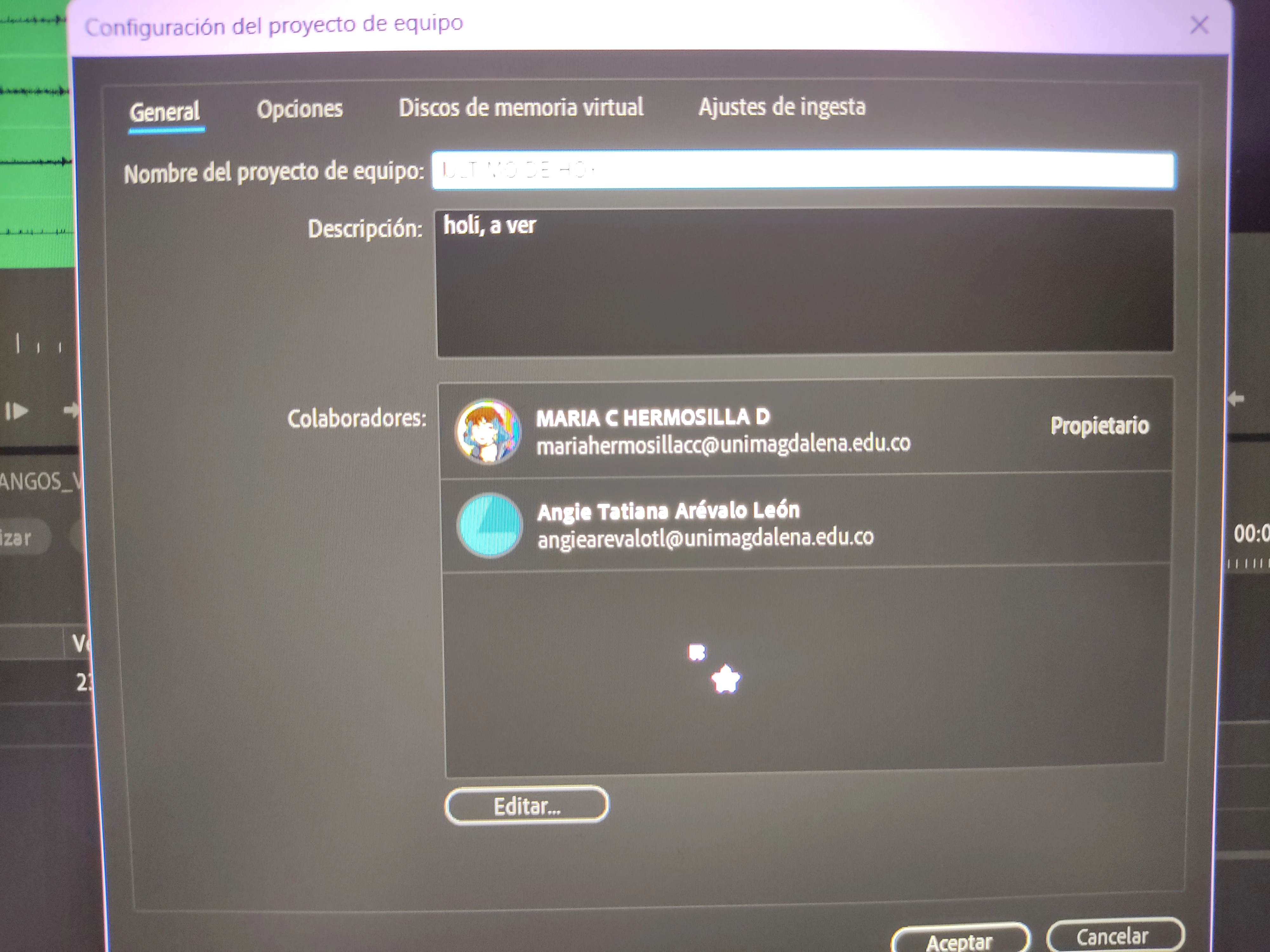 La primera, que a mi compañera le llega la invitacio a creative clod pero no a premiere, no le aparece el proyecto.