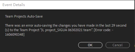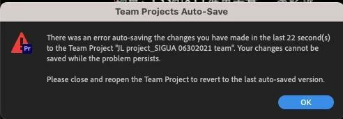 We are working on a Team Project. And one of the editor keep having auto-save issue. Like this. And she has tried relaunching Premiere, logging in with a different account or cleaning up the Team Project Locak Hub Folder. However, none of them solved the issue. Now she couldn't make any change or save any change in this teamproject.