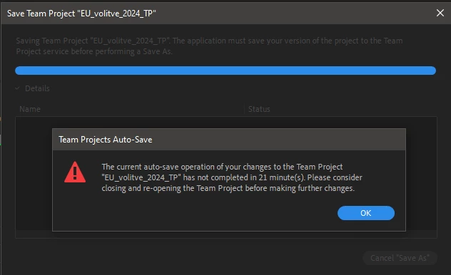 The only thing you can do is close the project without saving and sharing. Well done. It doesn't matter what size the project is, which Premiere version, how many assets, how many collaborators, it's been happening since Team projects were introduced! I was really hoping that this would be fixed in the current version. If Adobe would be financially responsible for every edit lost, and therefore money lost, that would not happen.