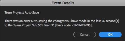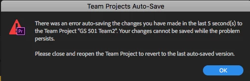 The setup- A team project was created and shared among 5 editors - all editors are in the same location with separate CC logins managed under our enterprise account. All media is on one shared storage RAID that all computers are connected to. PPro and CC versions are all current as of 04/17/18. The project was started yesterday (04/16/18) and we almost immediately began getting "auto-save" errors: