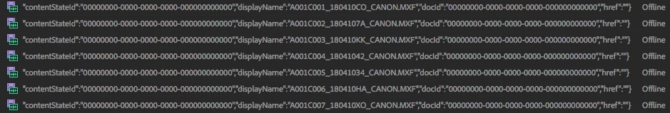 We also began to have media issues where a warning would pop up saying media was offline- The instruction was to use Team Project > Media Management to resolve this. Upon opening "Media Management" there was a list of clips proceeded with some sort of meta-data looking jibberish and the file name in the middle of it somewhere: