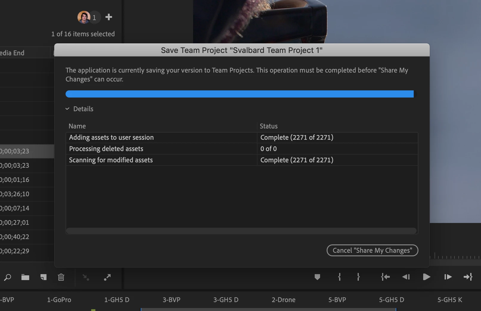 Team Project stuck on "Sharing Changes"