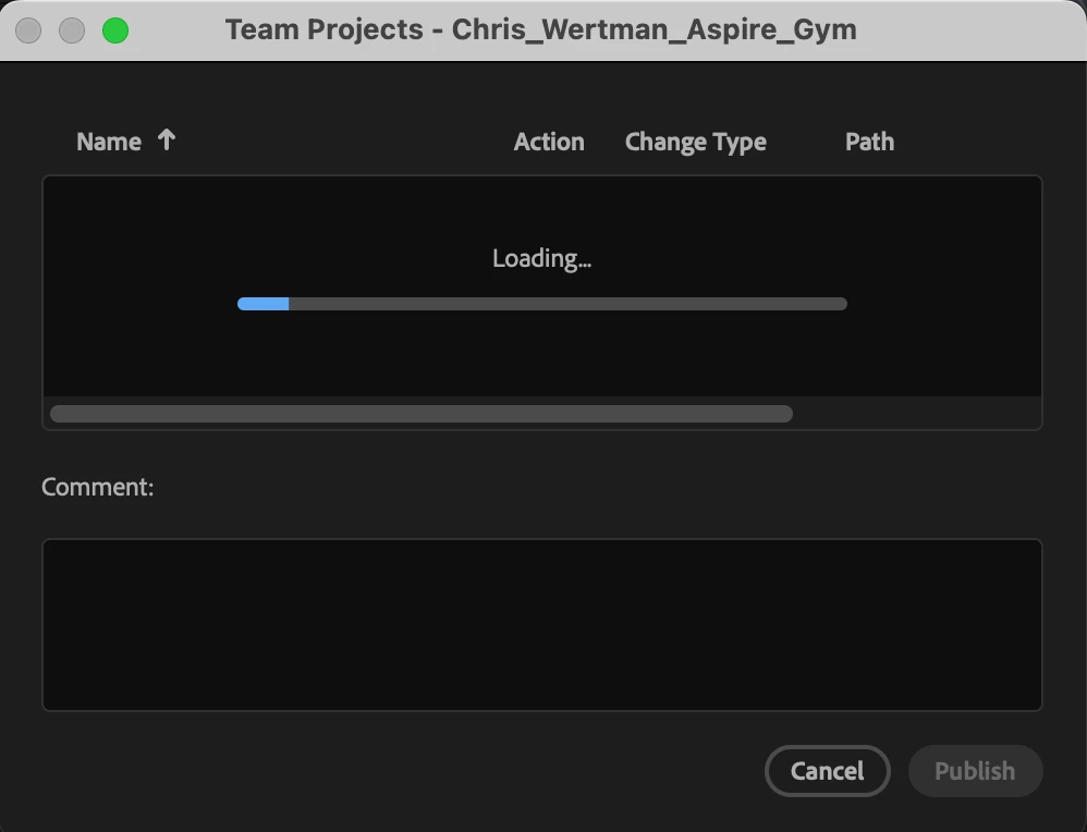No, the project was small. I restarted the computer, and it persisted several times. I eventually lost some of the progress because it wasn't saved to the cloud. So I turned the team project back to regulart porejct.