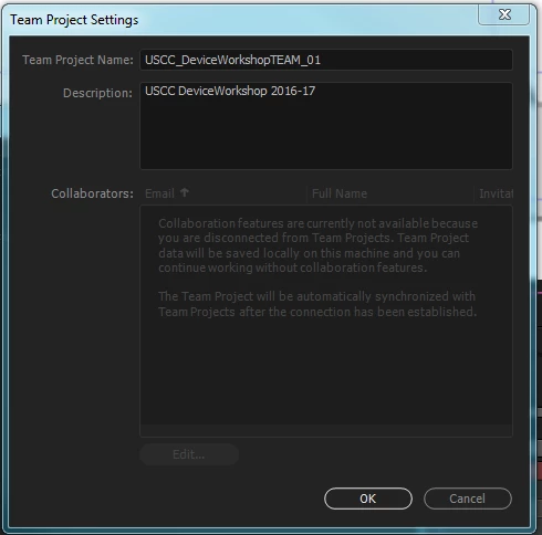 Team Projects Connection Lost