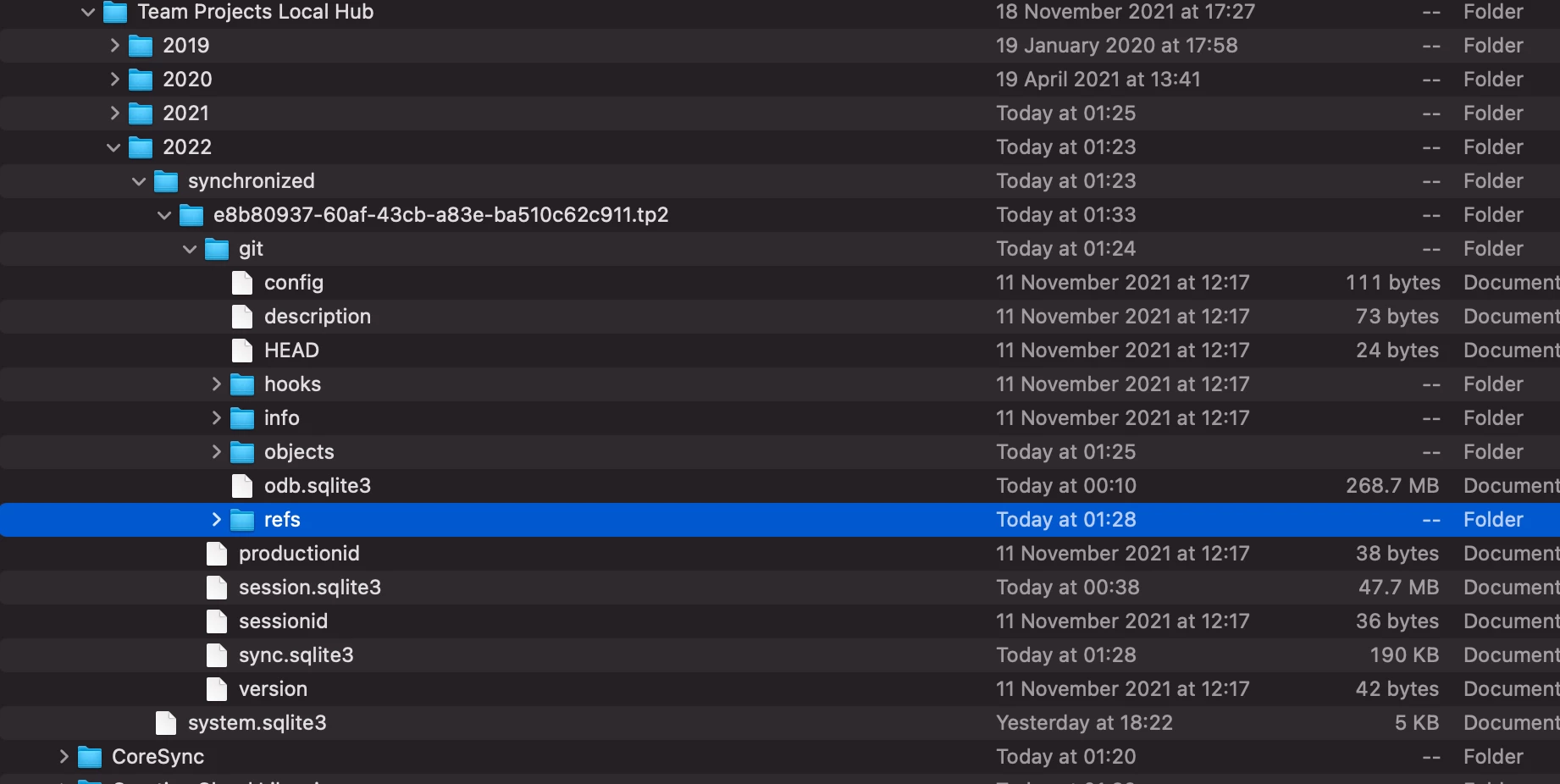 "On the Mac, the local Team Project copies are stored in subdirectories of ~/Library/Application Support/Adobe/Common/Team Projects Local Hub."
