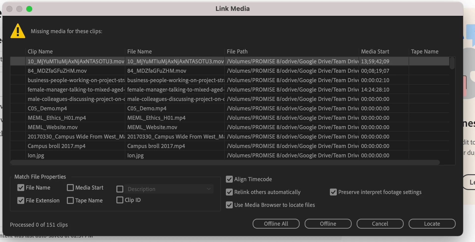 I clicked on "offline all" and I went to Edit > Team Project > Media Management but it when I designate the new path, it doesn't connect.