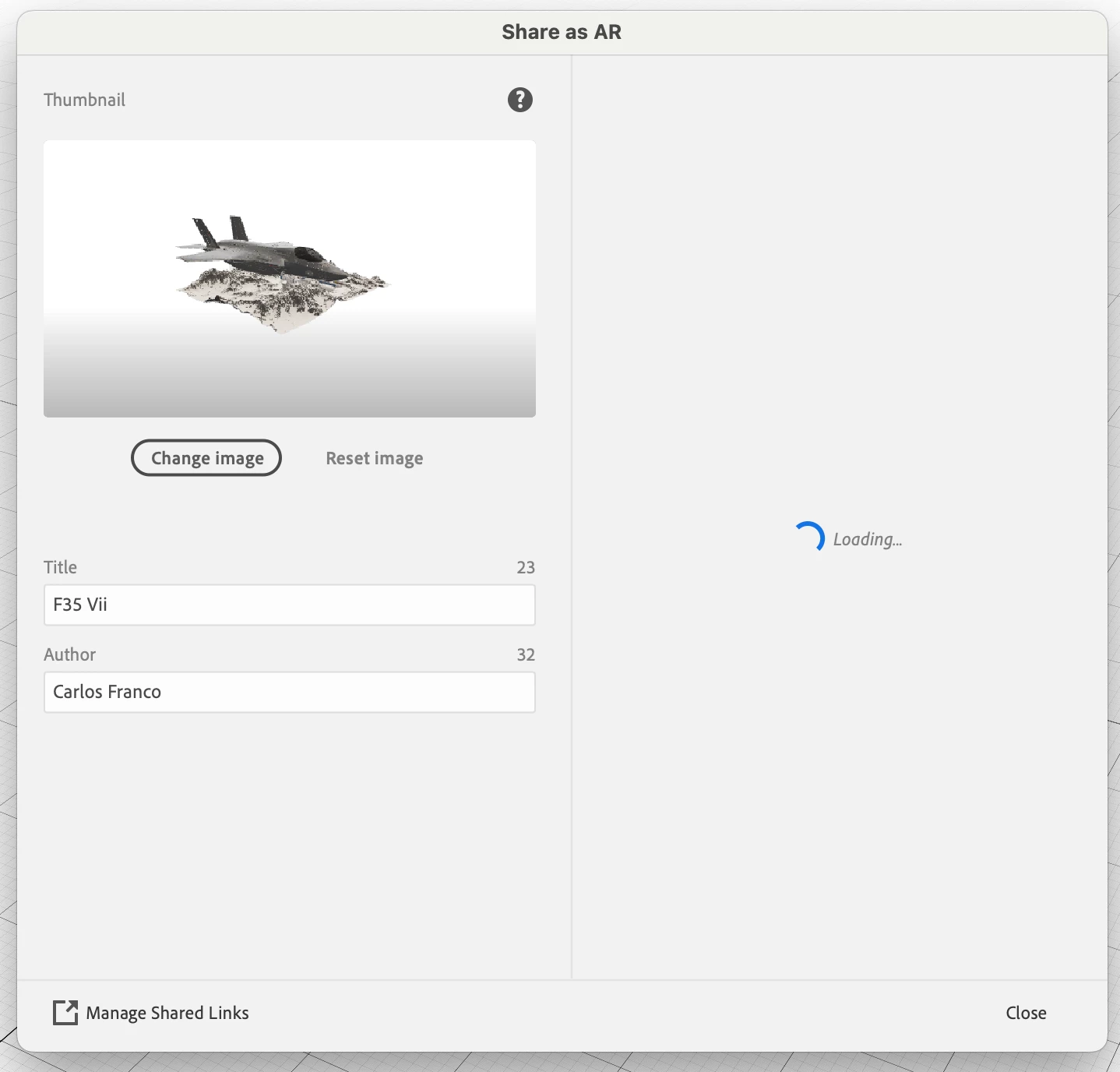 Adobe Aero Desktop Stuck on sharing