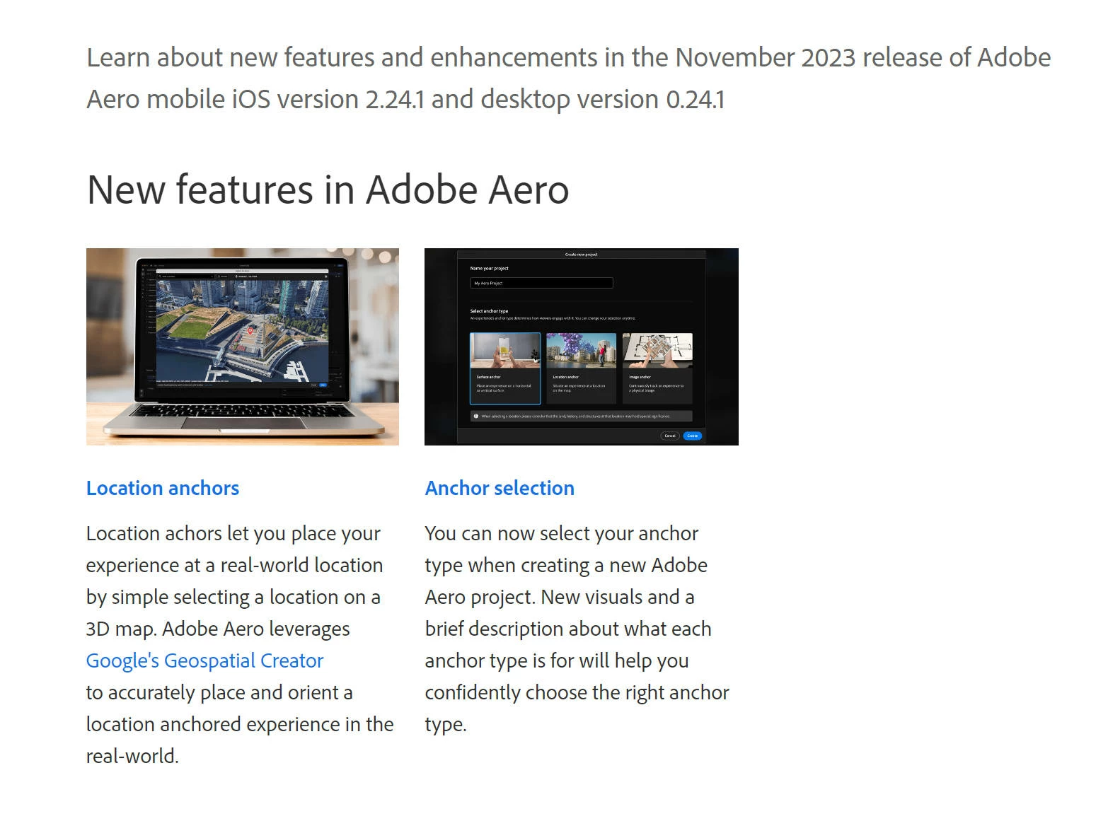 I've seen the AERO offical webpage about new features of geospatial creatro in AERO mobile IOS version 2.24.1 and desktop version 0.241, but it didn't. Really confusing....