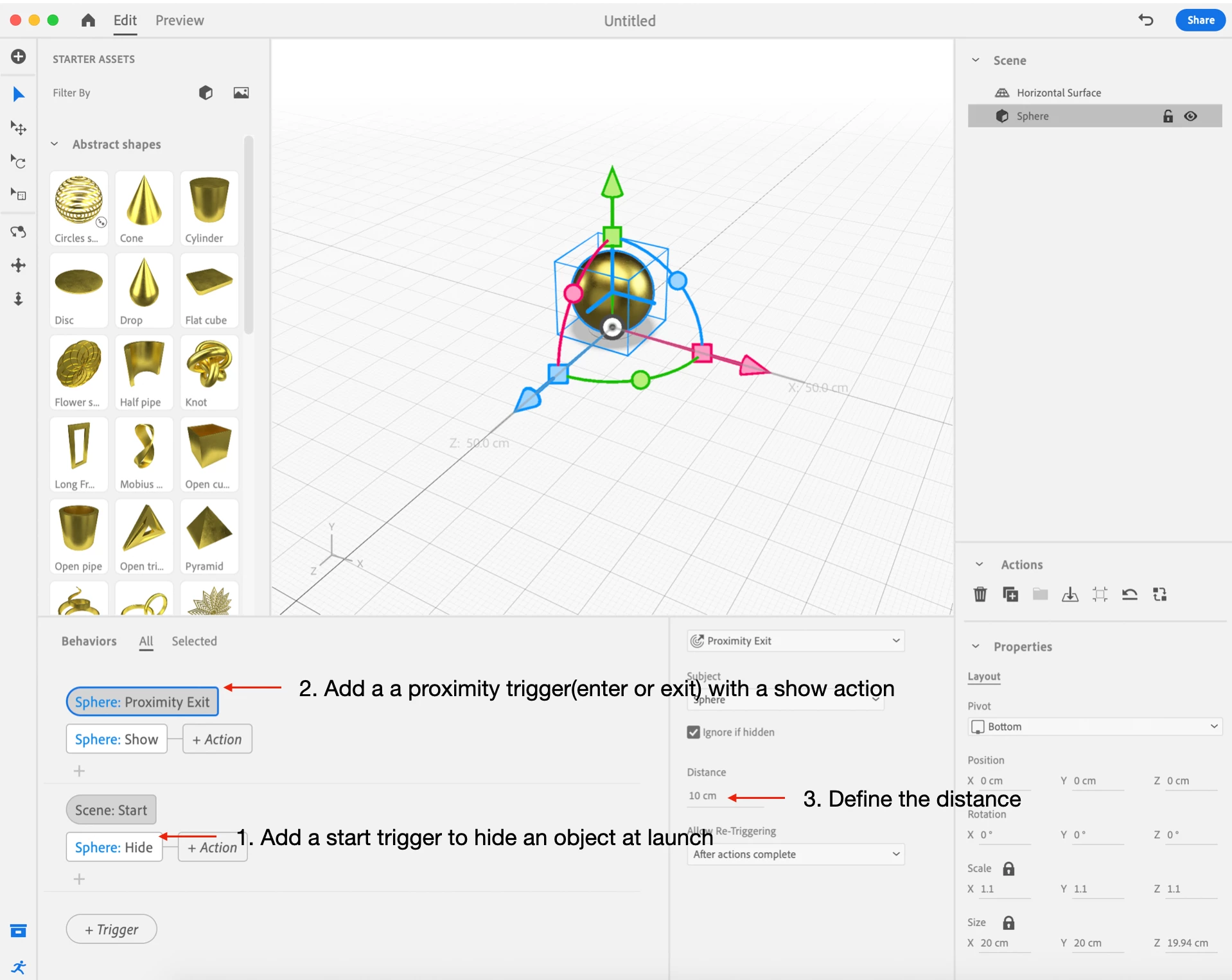 Basically, I want my object to appear only when I'm at a certain distance, BUT if I am further than that, it will disappear. Thank you! (I am doing my project on my IPhone)