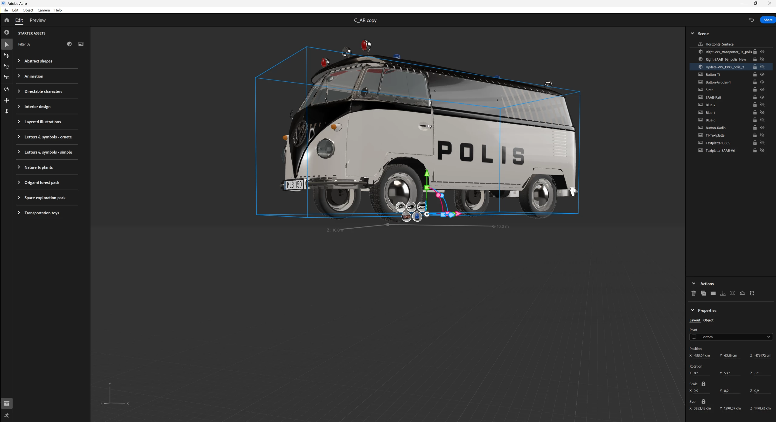 I've pretty much reached the end of the road here. We have created a car experience but having trouble fixating the vehicles (when you move they move) when the idea is that they should stay put. Also when setting pivot to bottom after align selecting, setting the y axis to zero the cars appear way to high and nowhere the ground which seems to be surface detecting just fine.