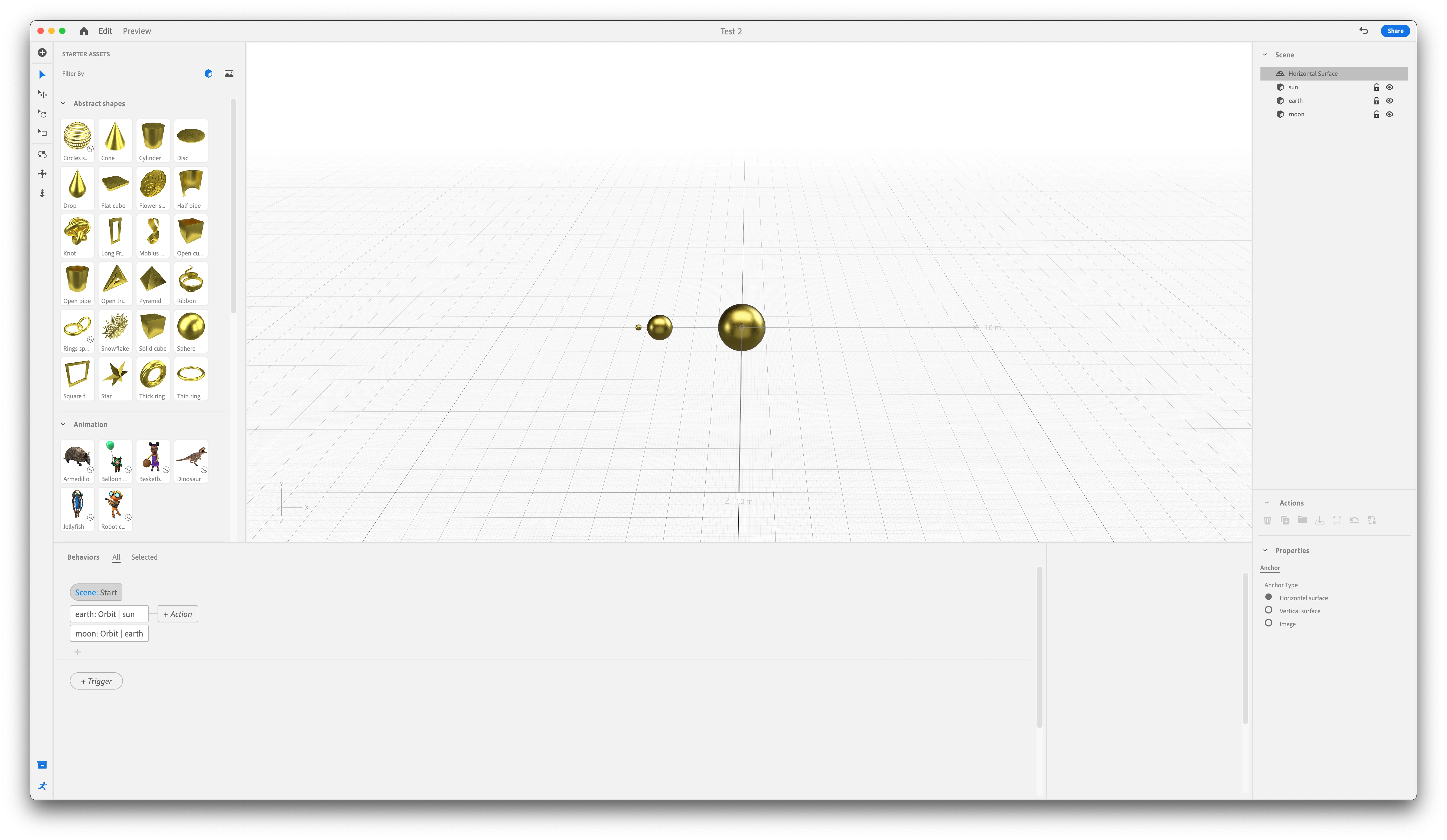 I have all the planets orbiting the sun fine but when I try and have the moon orbit the earth, just testing the orbit action once it works but when I preview it the moon's path orbits the sun.