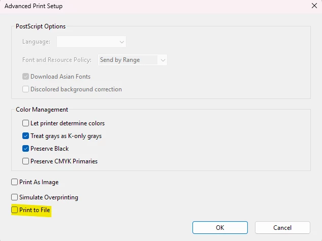 uncheck the print to file