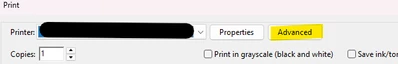 In the print dialog ,click advanced
