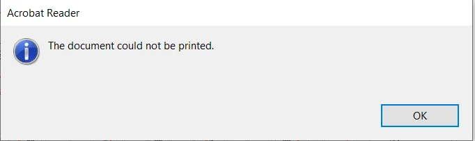 1) "The document could not be printed"