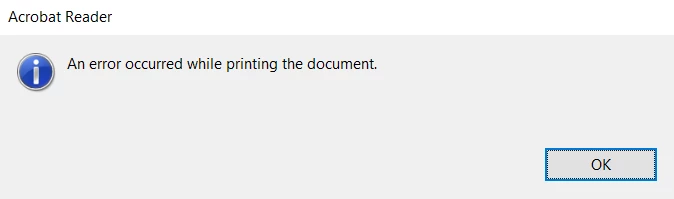 We are able to print different PDF's (converted from AutoCAD) Adobe, only a couple of PDF's have this problem, but there are more and more everyday. We can print the same PDF's using Chrome or any other PDF reader.