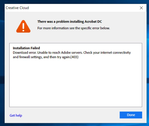 Able to install Creative cloud apps but not Acrobat DC