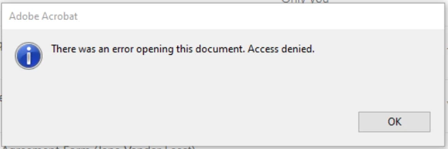 I am able to download a PDF, but when I try to go into Adobe and open the download I get the error message. If I make a copy of the download I can open the PDF one time, but if I try to open it again I get the error. Any ideas on why access is being denied??