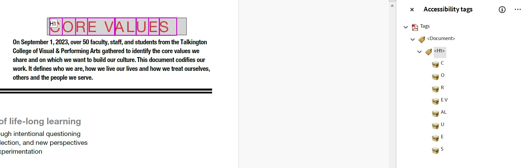Accessibility tag pulling letters instead of highlighted words