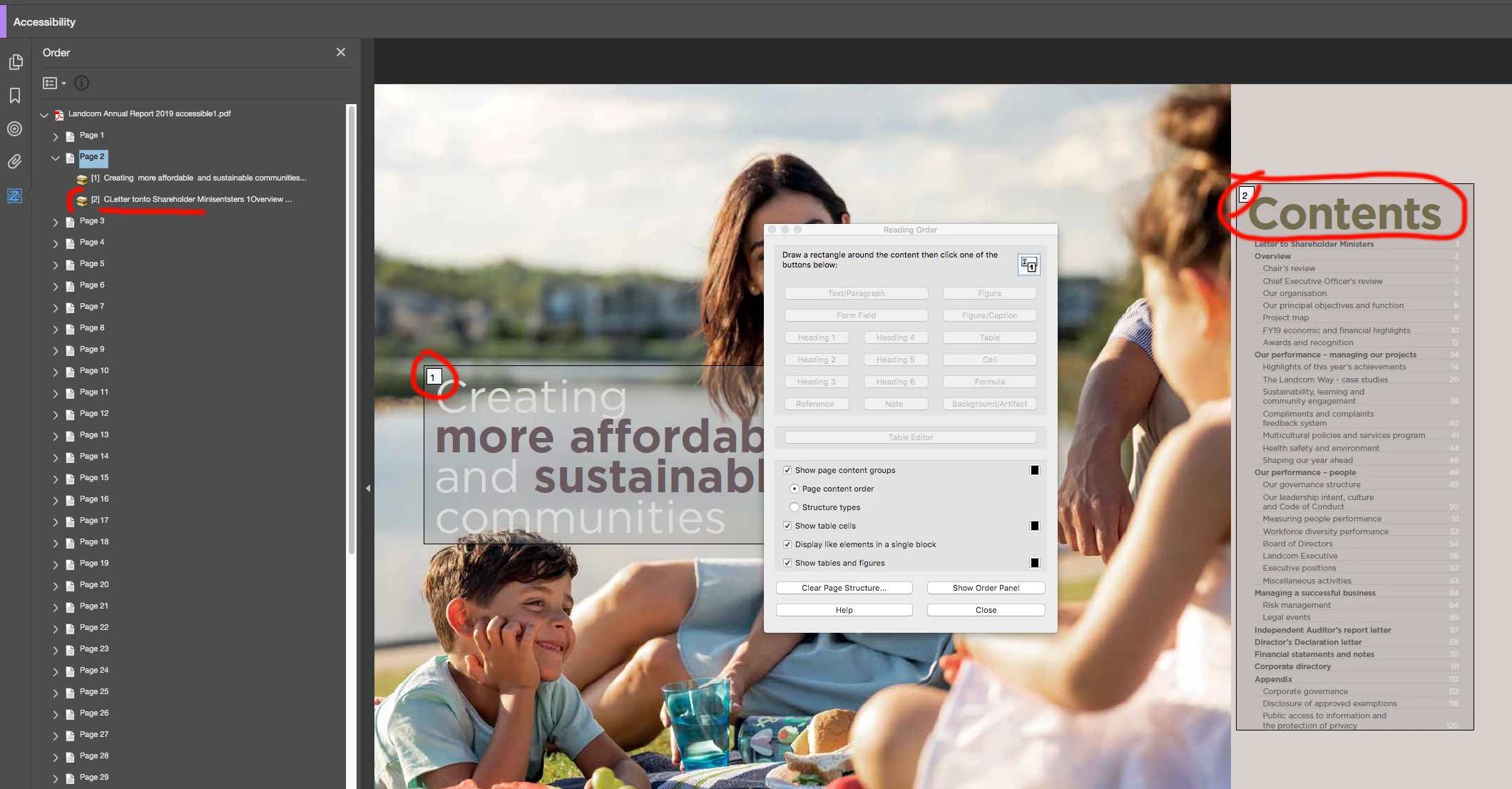 I have a large pdf document and I am making it accessible. I am having to change the reading order on some pages but when I draw a new box over the text, it is not picking up the text correctly for the reader.